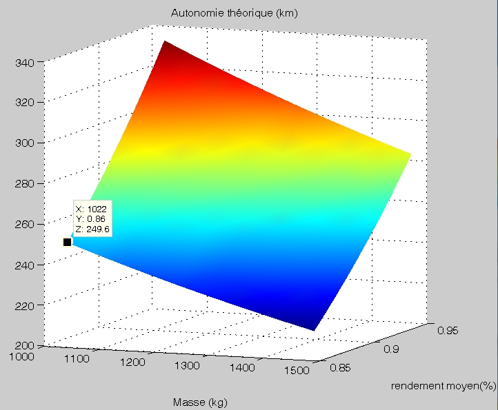 Selon ce modèle et sur ce cycle (à faibles accélérations), le gain d'autonomie est de 8.3km, soit 4% d'autonomie / 100kg d'allègement de masse.